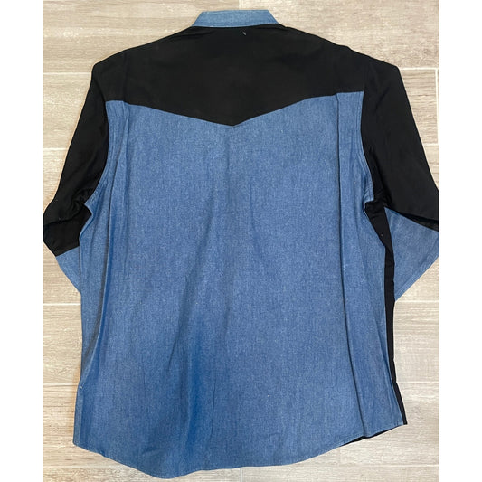 Vintage 90s Express Rider Denim Color Blocked Button Up